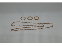 3 sormusta 10,00/18k ja ketju 8,01g/14